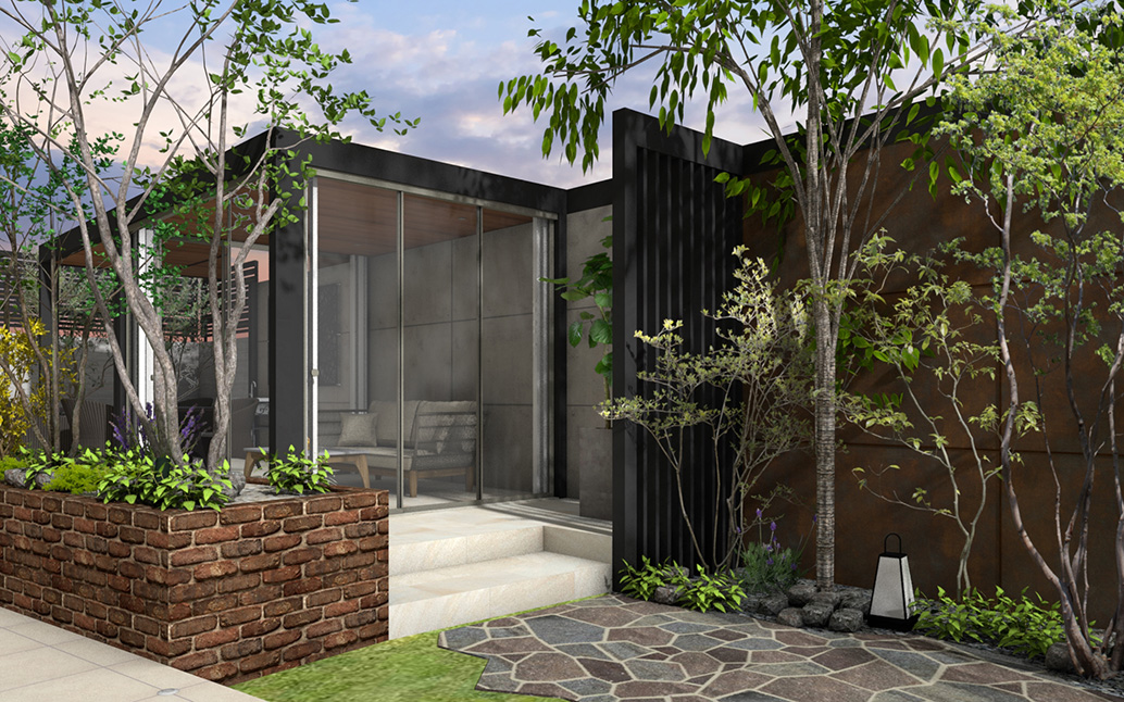 一体のデザインとなったガーデンゾーン。