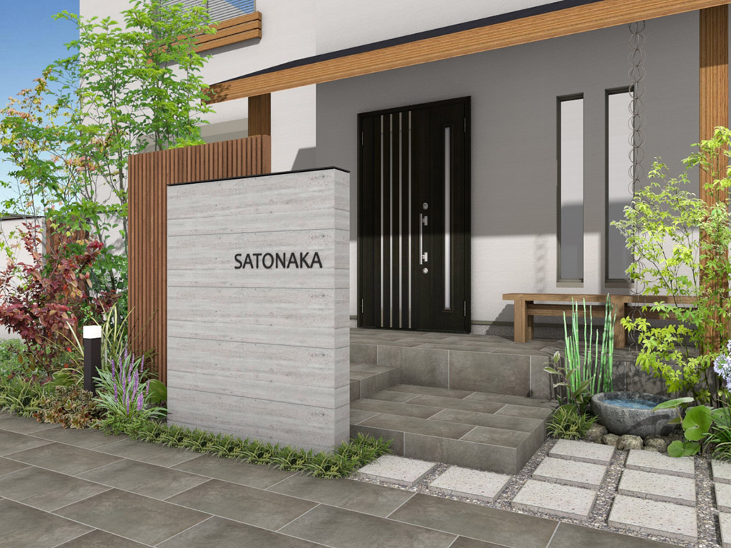ブ冷たい印象のタイル門柱の雰囲気を和らげます。
