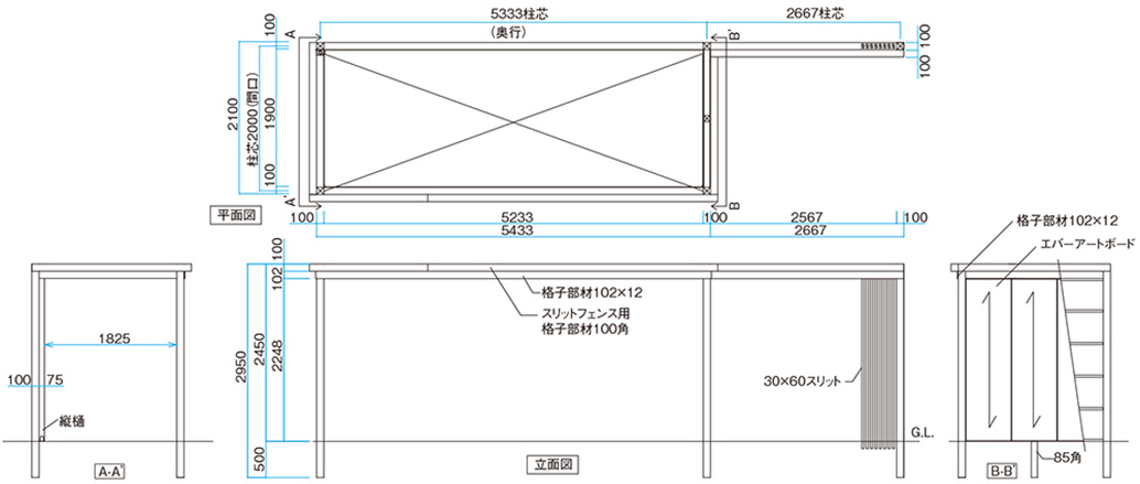 スリットフェンス用格子材 100角(ダークパイン)