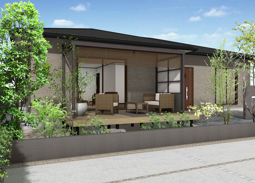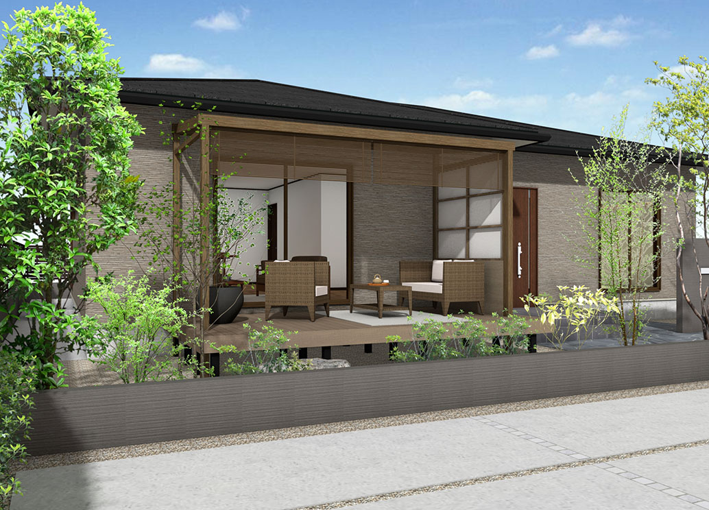 アルミスダレを取り付けた和風のテラス空間に