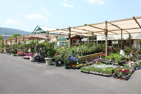 店舗は樹木300種以上、バラ200種以上、花苗・グランドカバー・宿根草300種以上、観葉植物200種以上。